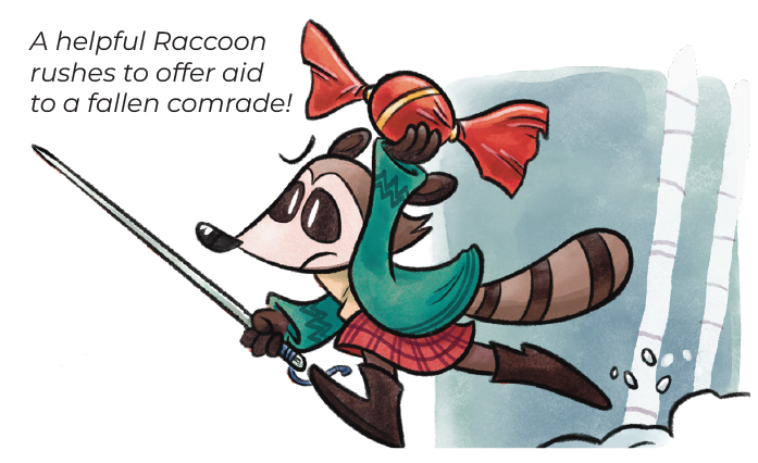 One of Frostholme’s Raccoons dashing through the snow to help a fallen comrade.